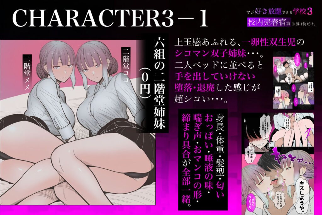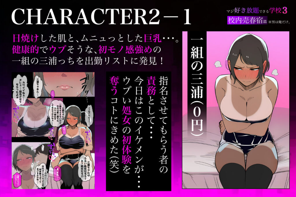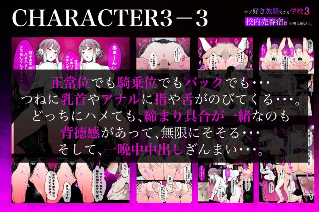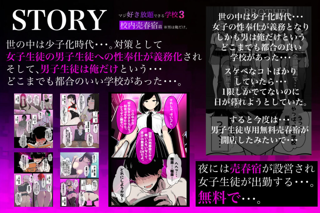 | タイトル | 少子化対策で性奉仕が義務なので、マジ好き放題できる学校3 ※男は俺だけ -校内売春宿篇- |